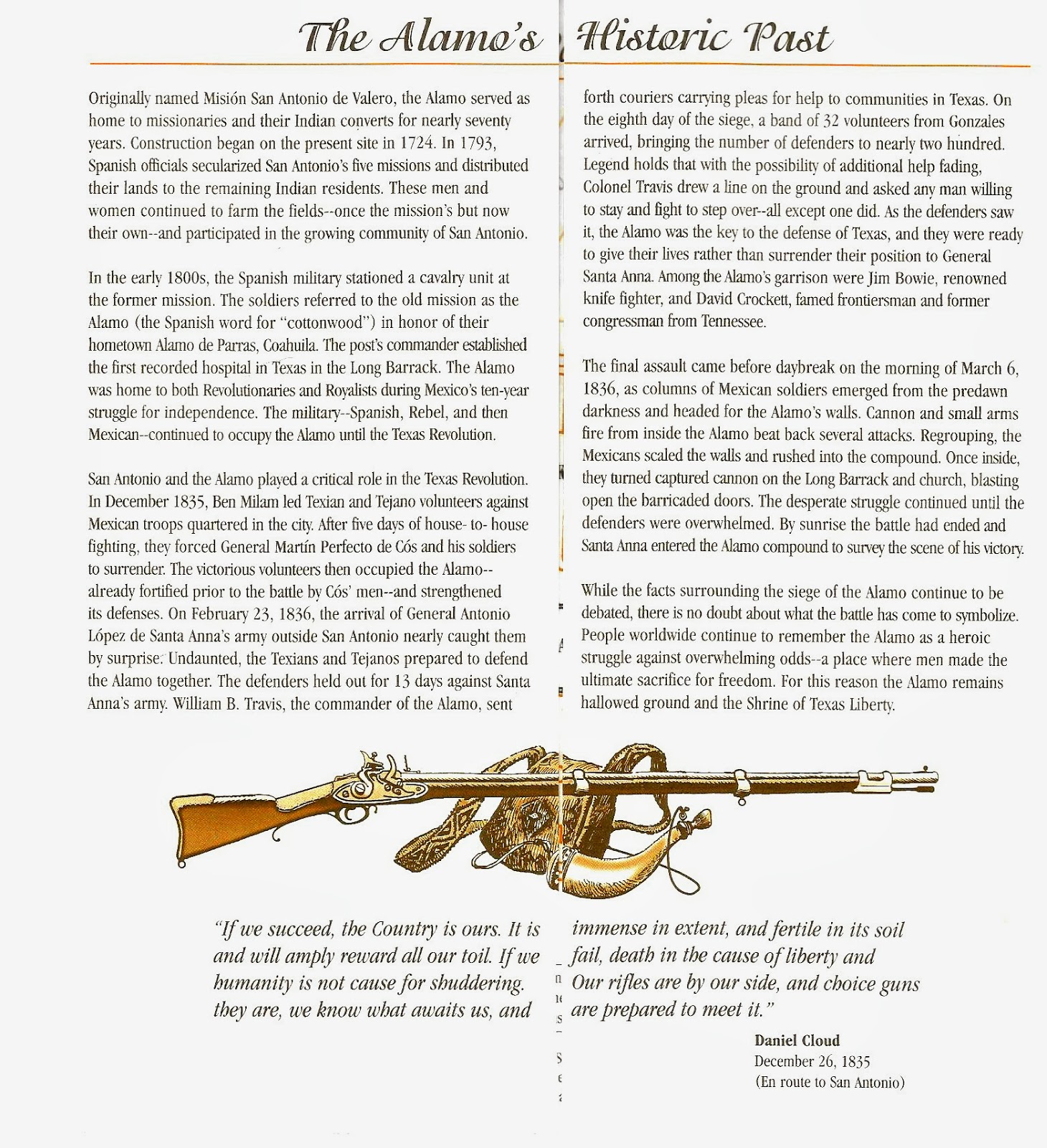 Daniel Cloud is my husband's 4th great grand uncle. A friend of mine visited The Alamo over the weekend and was kind enough to bring back a pamphlet for me that has a quote of Daniel Cloud.